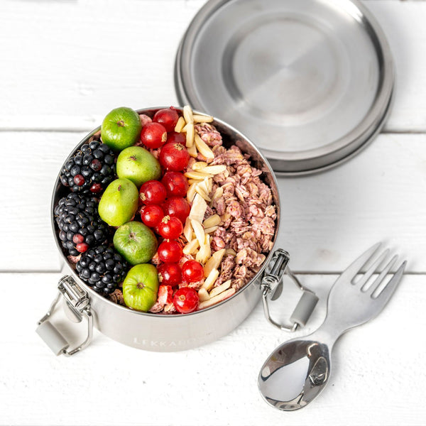 S LEKKABOX Clipsy si svoje jedlo na cesty uchováš jednoducho a ekologicky. Pevná nerezová dóza je ideálna na malé porcie jedla alebo desiaty – napríklad čerstvé ovocie, chrumkavú zeleninu, krémový jogurt či müsli. Skvele sa hodí aj na overnight oats alebo menšiu porciu šalátu. Vďaka viečku s integrovaným silikónovým tesnením zostane obsah bezpečne uzavretý a nič nevytečie.